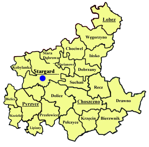 powiaty stargardzki, pyrzycki, choszczeński i część łobeskiego (gminy: Łobez,